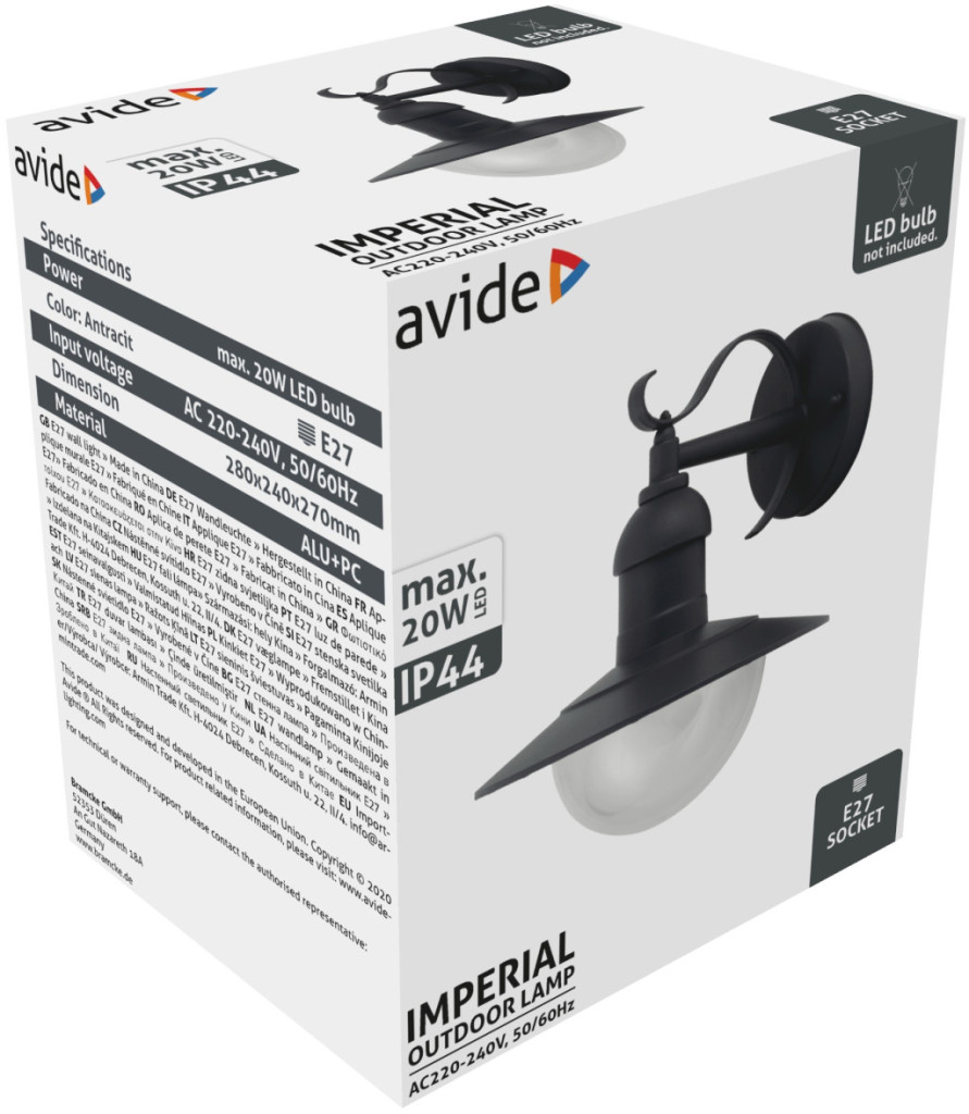 Avide kültéri fali lámpa Imperial 1xE27 IP44 Antracit