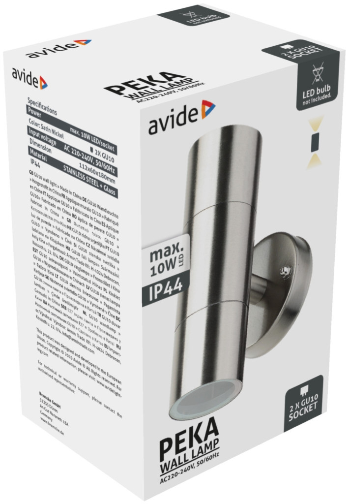 Avide kültéri fali lámpa Peka 2xGU10 IP44 Szatén Nikkel