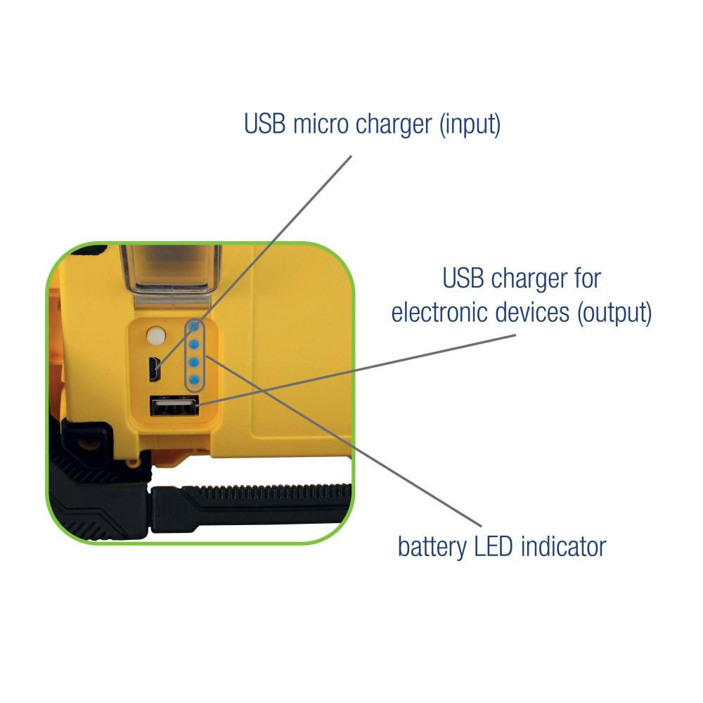 A 308-312 újratölthető LED-es reflektor 10 W összteljesítménnyel és 1000 lm-es fényerővel rendelkezik. Kompakt kialakítás, 3 fokozatú világítás, 2000 mAh akkumulátor, powerbank funkció, összecsukható állvány. A szilárd műanyagból készült, robusztus ház, a termék sarkain gumivédőkkel, rendkívüli ellenállást biztosít a nehéz körülmények között.