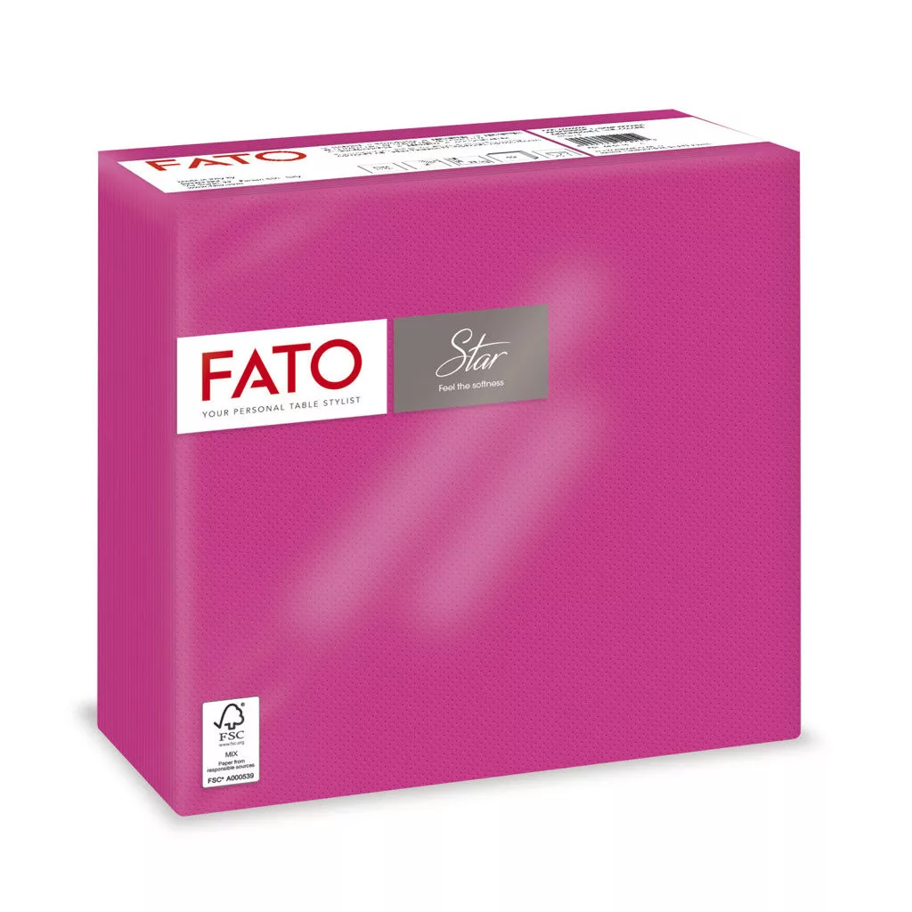 A FATO sztár 38×38 cm-es szalvéták a 33×33 cm-es változathoz képest nagyobb méretűek és vastagabbak a hagyományos papír szalvétáknál, így praktikusabbak ünnepi asztalokhoz vagy nagyobb adagokhoz. Színes, dekoratív kiegészítőt kínálnak minden étkezéshez. Puha, minőségi cellulózból készülnek, jól szívják a nedvességet, miközben feldobják az asztalterítést és a hangulatot.