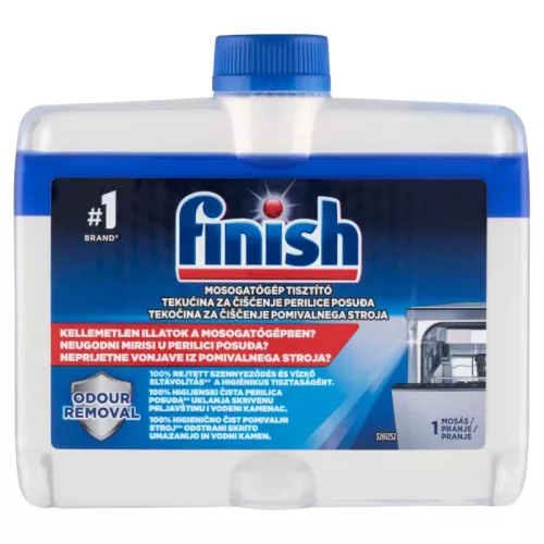 Egy koszos mosogatógép nem tud csillogó eredményeket produkálni. A legtöbb ember nem veszi észre, hogy a zsír és a vízkő felhalmozódhat a mosogatógép rejtett részeiben és csöveiben. Gyakran ez rejtve van, és rossz szagokat okozhat. A Finish Mosogatógép-tisztító használatával gépe higiénikusan tiszta és friss illatú lesz. A tisztább mosogatógép tisztább edényeket jelent! Használja ezt üres ciklusban az alapos tisztításhoz, magas hőmérsékleten, legalább 60 °C-on.