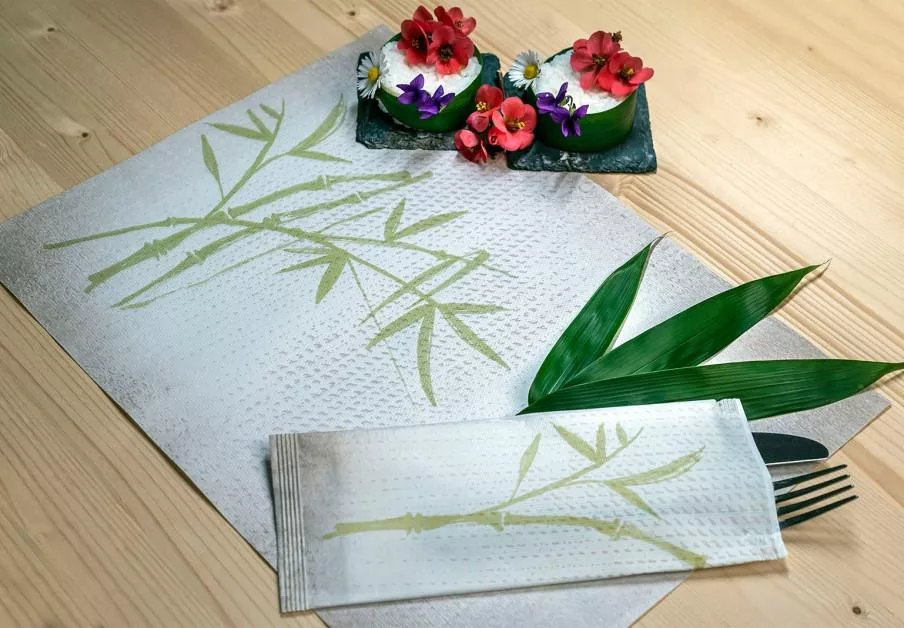 Infibra evőeszköztartó Asian, mintás, 2 rétegű 38x38 fehér szalvétával 125 darab/csomag