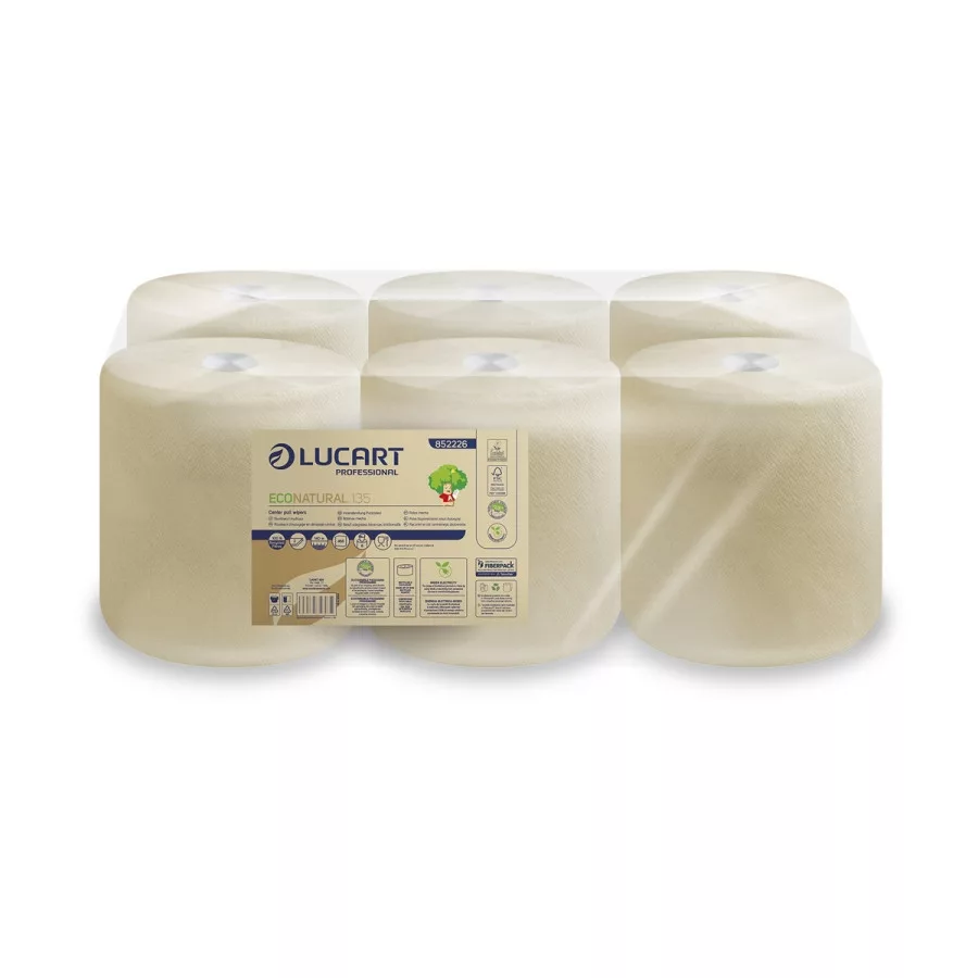Lucart ECO Natural tekercses kéztörlő 2 rétegű, 450lap, 135m, 6tekercs/zsugor, 48zsugor/raklap
