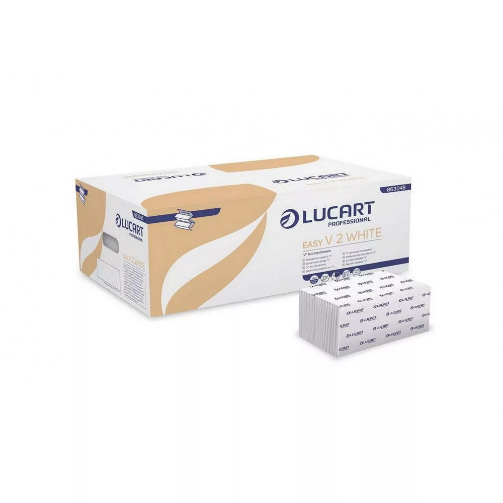 Lucart Easy V hajtogatott kéztörlő 2 rétegű fehér, 20x190lap/karton 40karton/raklap