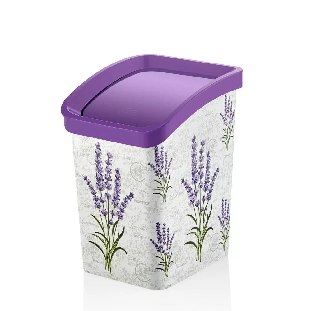 Műanyag Smart Click billenőfedeles szemetes, Levendula mintás 12L