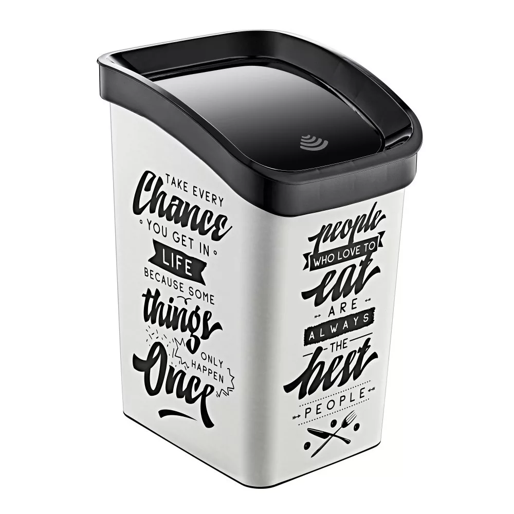 Műanyag Smart Click billenőfedeles szemetes, fehér/fekete mintás felirattal GOGO 23L