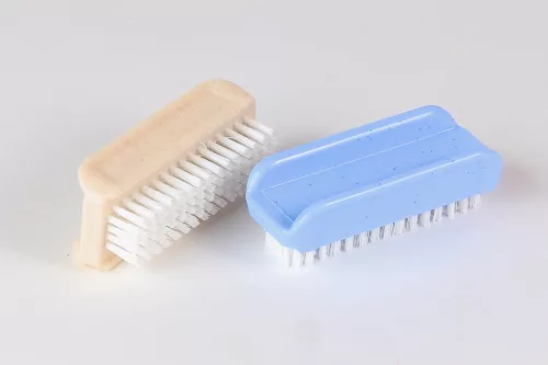 Klasszikus egyoldalú műanyag körömkefe, műanyag szálakkal.