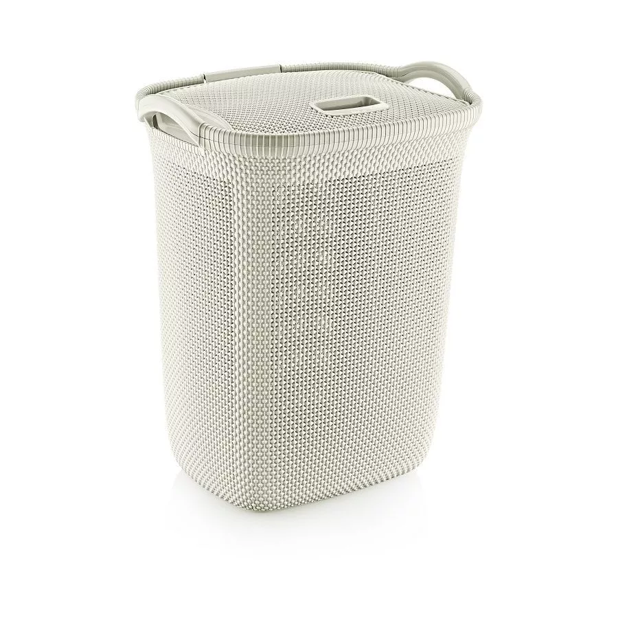 Műanyag szennyeskosár fedéllel krém 63L