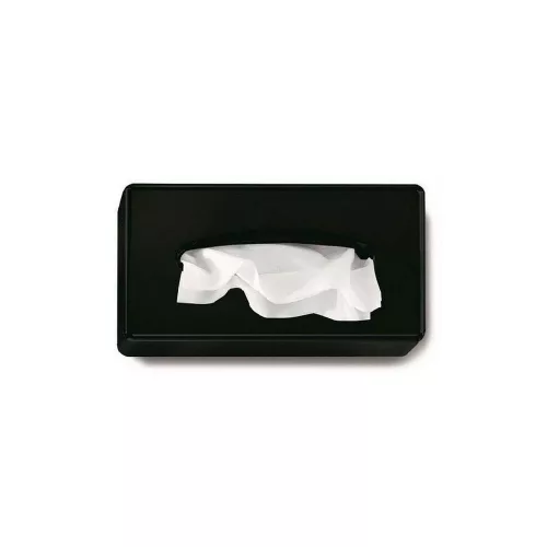 Kozmetikai kendő tartó. Az adagoló falra szerelve és asztalra helyezve is használható. A kozmetikai kendők papír zsebkendőként is használhatók, és a tartó segítségével megvalósítható a laponkénti adagolás. Fényes fekete színben.