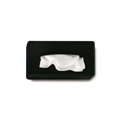 Kozmetikai kendő tartó. Az adagoló falra szerelve és asztalra helyezve is használható. A kozmetikai kendők papír zsebkendőként is használhatók, és a tartó segítségével megvalósítható a laponkénti adagolás. Matt fekete színben.