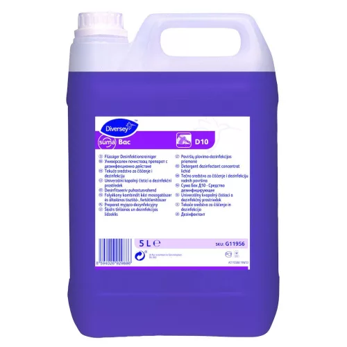 A Suma Bac D10 tisztító-, fertőtlenítő hatású (kombinált) koncentrált vegyszer, mely alkalmas valamennyi élelmiszerrel érintkező felület tisztító fertőtlenítésére.