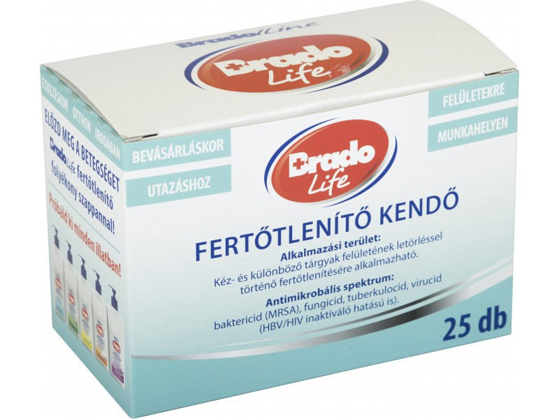 bradolife fertőtlenítő kendő 25 db