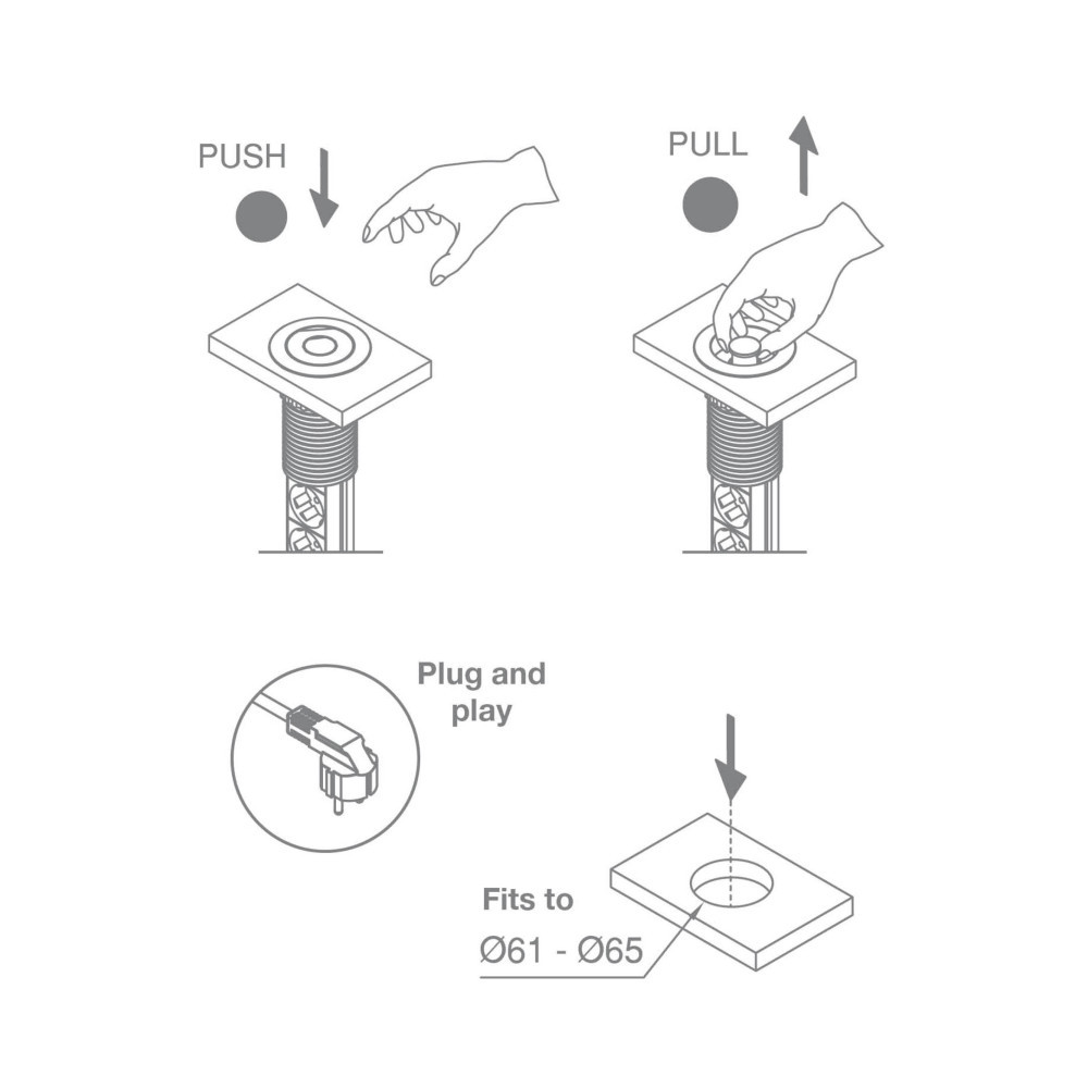 Commel bútorba építhető, rejtett elosztó 3 db aljzat, fém gyürü 16A 3500W