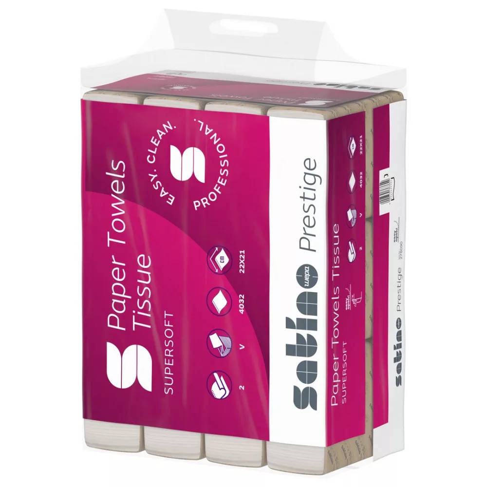 Satino Wepa Prestige V hajtogatott kéztörlő 2 rétegű, cellulóz, 22x21cm, 4032lap/zsák