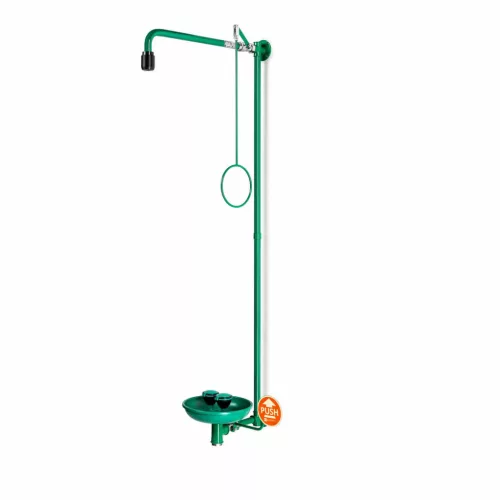 A biztonsági zuhanykombinációk ? a vészhelyzeti testzuhanyok és a szemzuhanyok kombinációi ? több helyet takarítanak meg, mint az egyedi telepítés. Ez lehetővé teszi egy központi hozzáférési pont létrehozását elsősegélynyújtáshoz. A lehetséges kombinációnak köszönhetően a kézi szemzuhannyal egy sérült a kisebb sérülések részleges ellátását a vészhelyzeti testzuhany használata nélkül is elvégezheti. Nagy teljesítményű zuhanyfej a visszafogott, egyenletes és lágy vízsugárért a vegyszerek szemből történő kiöblítésére optimalizálva. A robusztus kialakítás alkalmas a mindennapi nehézipari használatra is. Tökéletes beállítást biztosít a vészhelyzeti testzuhany a helyszíni veszélyes helyzetekhez igazodva a percenként 50 és 110 liter közötti választható térfogatáramnak köszönhetően. Önleeresztő, nagymértékben vízkőmentes és karbantartásmentes, valamint nagyon tartós és korrózióálló. Az állítható vészhelyzeti testzuhanyok a helyszíni körülményekhez igazodnak. Vegyszerálló poliészter porbevonat az agresszív környezetben való használatra. Vízbemenet: 3/4?-es hüvelyes. Testzuhany áramlási sebessége: 75 l/perc | 20 GPM. Szemzuhany áramlási sebessége: 14 l/perc.