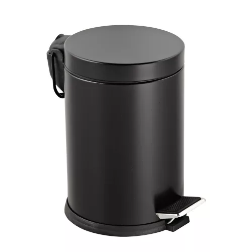 Galvanizált acél pedálos szemetes, kivehető műanyag vödörrel, fekete színű, 5L
