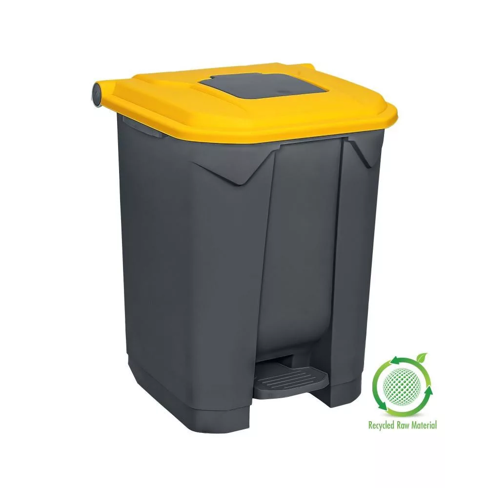- Szelektív hulladékgyűjtő konténer, műanyag, pedálos, antracit, SÁRGA, 50L