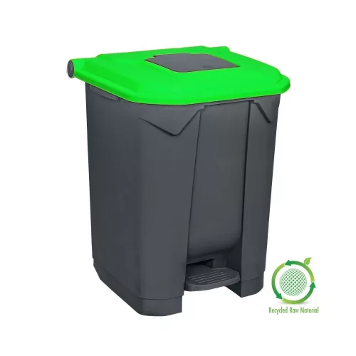 - Szelektív hulladékgyűjtő konténer, műanyag, pedálos, antracit, ZÖLD, 50L